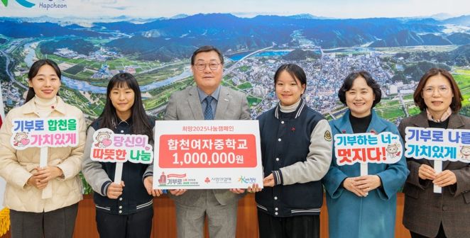김윤철 합천군수는 “주변 이웃들을 생각하는 학생들의 따뜻한 마음에 감사드리며, 소중한 성금은 꼭 필요한 이웃에게 전달하겠다”고 밝혔다.