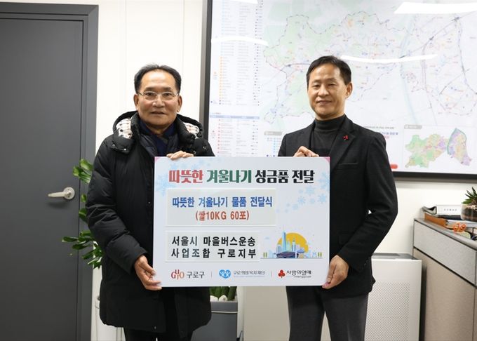 구로구 관계자는 “연말을 맞아 따뜻한 마음으로 이웃사랑을 실천해 주신 구로구마을버스지부에 진심으로 감사드린다”며 “꼭 필요한 분들께 잘 전달될 수 있도록 하겠다”고 말했다.