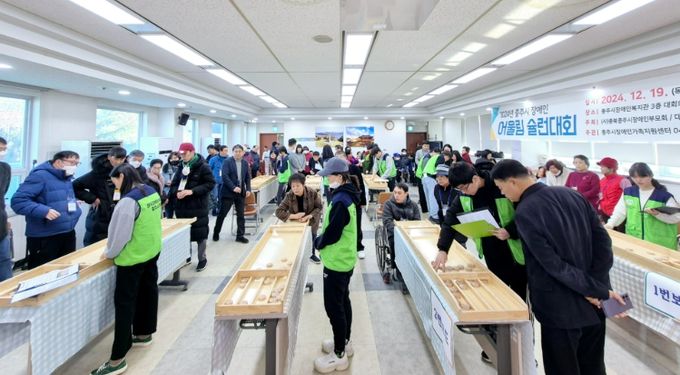 [경남도민뉴스=박만수 기자] (사)한국장애인부모회 충주시지부(지부장 홍석주), (사)대한장애인슐런협회 충주시지회(지회장 장덕주)가 공동 주최하고 충주시 장애인가족지원센터가 주관하는 ‘충주시 장애인 어울림 슐런대회’를 19일 개최했다.