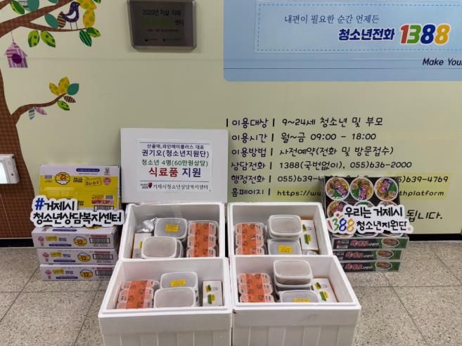 [경남도민뉴스=김부경 기자] 거제시청소년상담복지센터는 1388청소년지원단으로부터 위기청소년 43명을 대상으로 식료품을 연계·지원 받았다.