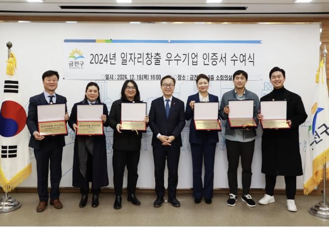 [경남도민뉴스=윤장희 기자] 금천구는 지난 1년간 일자리 창출에 기여한 우수기업을 선정하고 19일 인증서와 현판을 수여했다고 밝혔다.