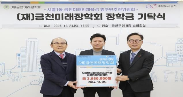 [경남도민뉴스=윤장희 기자] 금천구는 시흥1동 금천미래인재육성 범구민추진위원회와 시흥3동 주민자치회에서 금천구 우수 인재들을 위한 장학금을 (재)금천미래장학회에 전달했다고 밝혔다.