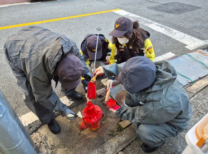 소방공무원과 의용소방대 약 900명이 참여하여 소방용수시설 전담대를 구성, 약 7개월간 지상식 소화전 527개소와 제수변 덮개 848개소에 내식성 도료로 도색했다.