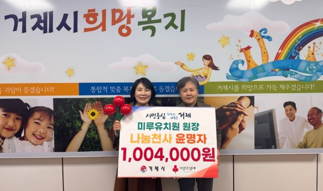 지난 24일 거제시에 따르면 미루유치원 윤명자 원장, 새마을운동거제시지회(지회장 권수오) 산하 5단체가 각각 1,004,000원씩 기탁했다.