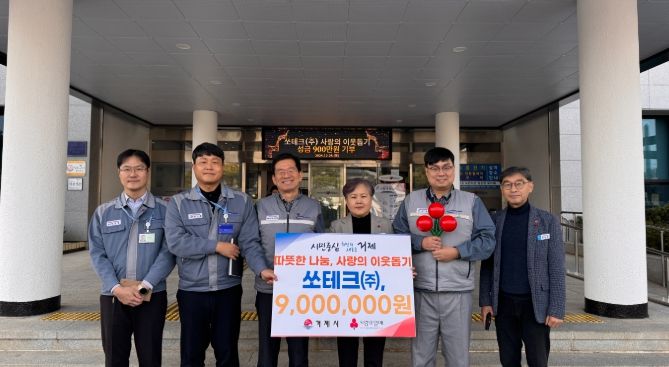 이에 거제시 관계자는 “어려운 경기에도 지역사회에 따뜻한 관심을 보내주셔서 감사드리며, 쏘테크(주)의 임직원들이 함께 모아주신 소중한 성금은 따뜻한 마음과 함께 잘 전달하겠다”고 답했다.