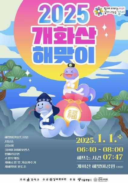 [경남도민뉴스=윤장희 기자] 서울 강서구는 오는 1월 1일 개화산 정상에서 ‘2025 을사년 해맞이 행사’를 개최한다고 밝혔다.