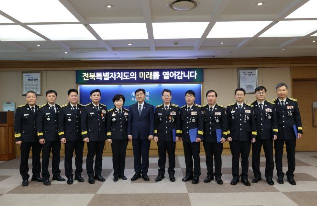 [경남도민뉴스=최인태 기자] 전북특별자치도는 2025년 새해를 맞아 도민의 안전 강화를 위한 강한 의지를 담아 2일 오전 9시 30분, 도청 4층 지사실에서 소방공무원 소방서장급 승진자와 전보자에 대한 임명장 수여식을 개최했다.