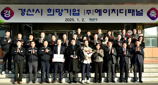 [경남도민뉴스=최민숙 기자] 경산시는 ㈜에이치디패널을 2025년 1분기 경산 희망기업으로 선정하고, 2일 시무식에서 트로피 시상 및 현판 전달식을 가졌다.