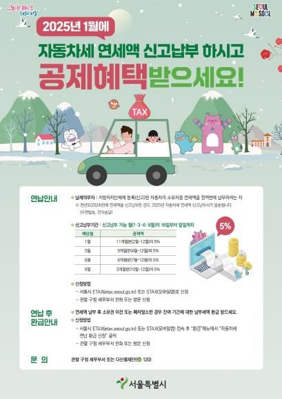[경남도민뉴스=윤장희 기자] 구로구가 오는 31일까지 2025년 자동차세 연납 신청을 받는다.