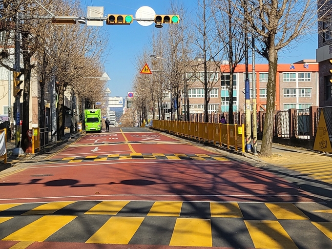 이번 개선은 지자체의 협조를 받아 추진한 것으로 어린이 보호구역 보행자 안전을 위한 횡단보도 재도색 및 노후 방호울타리를 교체하고, 차량 운전자의 주의 환기를 위해 미끄럼방지 포장, 제한속도 30 노면 표시를 추가하는 등 4개소를 개선하였다.