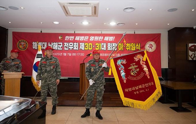 [경남도민뉴스=김부경 기자] 해병대 남해군 전우회는 지난 7일 남해터미널뷔페에서 회원 및 내외빈 100여 명이 참석한 가운데 제30‧31대 회장 이취임식을 열고 제31대 임원진을 구성했다.