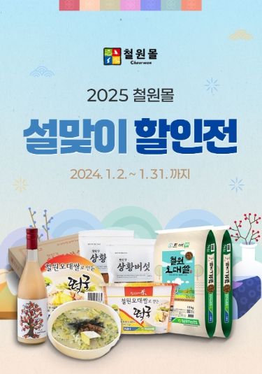 한편 철원몰은 2025년 설맞이 특별 이벤트를 펼쳐 1월 2일 ~ 1월 31일까지 틀별할인기획전을 비롯 최대 30%할인된 가격에 철원 특산물을 구매할 수 있는 쿠폰을 제공한다.