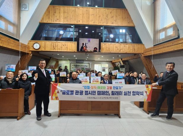 [경남도민뉴스=표재민 기자] 국제관광도시 시민실천운동 추진위원회(위원장 최길영)는 9일 친절·정직·깨끗한 강릉만들기 글로벌 관광 범시민 캠페인 릴레이 실천 협약을 강릉시기독교연합회(회장 김영철)와 체결했다.