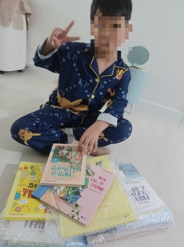 미술 교구를 지원받은 아동은 기뻐하며 바로 색연필을 들고 그림을 그리기 시작했으며, 도서와 미술 교구를 지원받은 부모님들은 무척 만족해하며 감사함을 표현했다.