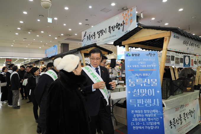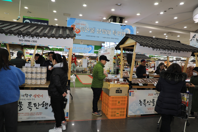 [경남도민뉴스=장광동 기자] 함양군에서는 1. 10일 양재하나로마트 이벤트홀에서는 함양농특산물 설맞이 특판행사, 함양 상림공원에서는 함양고종시곶감축제를 동시에 막을 올렸다.