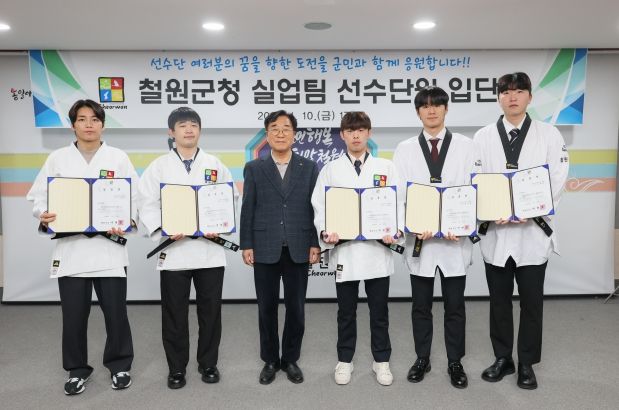 [경남도민뉴스=표재민 기자] 철원군은 1월 10일 17시 철원군청에서 2025년 새롭게 영입한 유도 및 태권도 실업팀 선수 입단식을 개최했다.