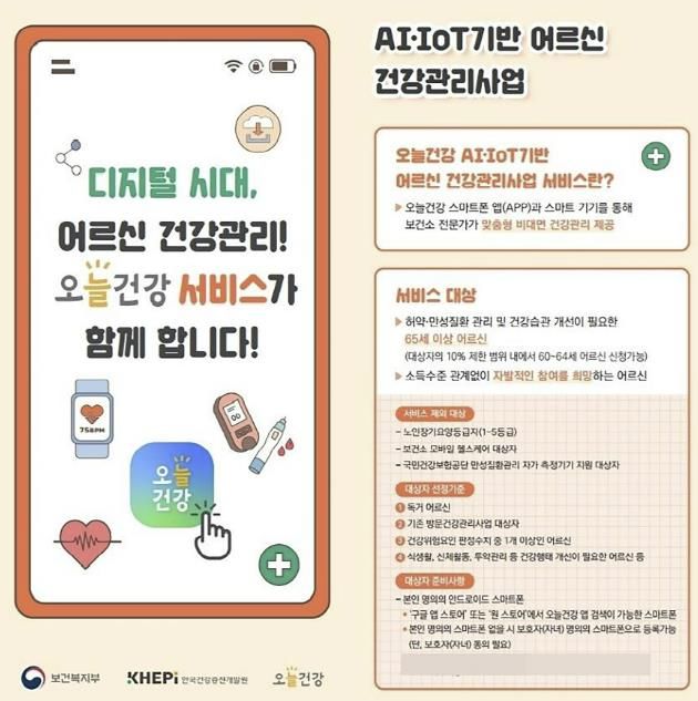 이 사업은 스마트폰 앱 ‘오늘 건강’과 스마트기기를 통해 간호사, 물리치료사, 영양사 등 각 분야 건강 전문가들이 6개월간 비대면으로 대상 노인에 맞춤형 건강관리를 해주는 서비스다.