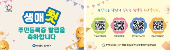 [경남도민뉴스=김미순 기자] 안양시 만안구는 2025년 생애 첫 주민등록증을 발급하는 청소년들을 대상으로 축하 카드를 제작 배부한다고 14일 밝혔다.