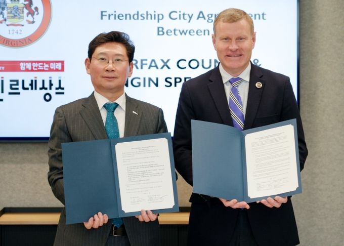 이 시장은 “오는 9월 양자역학(퀀텀·Quantum)기술, 11월에는 항공우주산업 관련 컨퍼런스가 열리는 페어팩스 카운티에는 관련 산업의 투자자와 기업 관계자, 리서치 기관 등이 모여 산업의 육성과 네트워크를 형성하는 기회의 자리”라며 “이번 우호결연을 계기로 두 도시가 기업과 대학, 문화를 교류하면서 발전할 수 있기를 기대한다”고 했다.