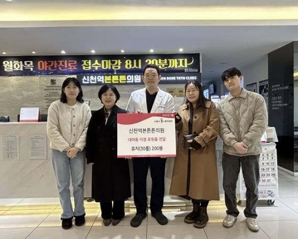 [경남도민뉴스=김미순 기자] 신천역본튼튼의원은 지난 14일 휴지 30개들이 200세트를 대야동 마을자치과에 전달했다.