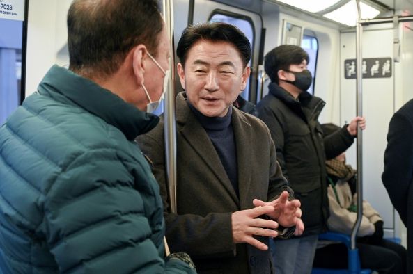 [경남도민뉴스=김미순 기자] 김동근 의정부시장은 1월 14일 오전 출근길에 의정부경전철을 직접 이용하며 시민들과 소통의 시간을 가졌다.