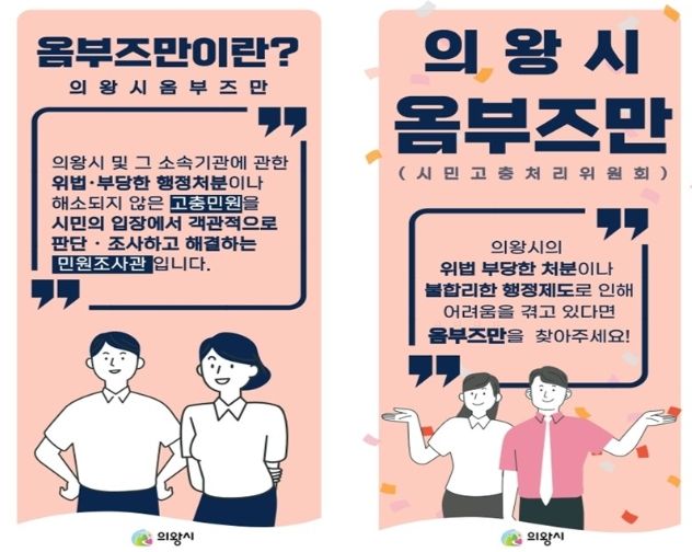[경남도민뉴스=김미순 기자] 의왕시는 시민이 겪는 행정상의 고충을 공정하게 해결하고자 ‘의왕시 옴부즈만(시민고충처리위원회)’ 제도를 운영하고 있다.