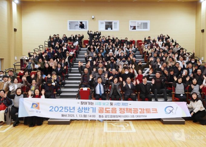 [경남도민뉴스=김미순 기자] 공도읍 주민과 함께하는 2025년 상반기 정책공감토크가 150여명의 시민이 참여한 가운데 지난 1월 13일 공도읍행정복지센터에서 개최됐다.