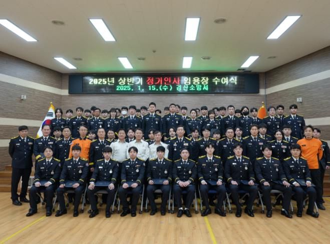 [경남도민뉴스=최민숙 기자] 경산소방서는 1월 15일 경산소방서 2층 대회의실에서 승진 및 전입, 전보자 등 66명에 대한 임용장 수여식을 실시했다.