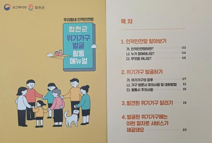 [경남도민뉴스=김춘호 기자] 합천군은 읍면의 인적안전망을 통한 위기가구 발굴을 위해 ‘합천군 위기가구 발굴 활동 매뉴얼’ 1,000부를 제작해 배포했다.