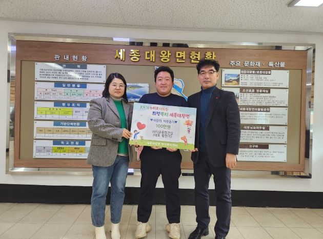 홍광래 세종대왕면장은 “주변의 취약계층 가구에게 따뜻한 마음으로 나눔을 실천해주셔서 감사드린다.”며 “기탁해 주신 성금은 어려운 이웃을 위해 잘 사용하고 아름다운 기부문화가 생활이 되는 세종대왕면을 만들어 나가겠다.”고 전했다.