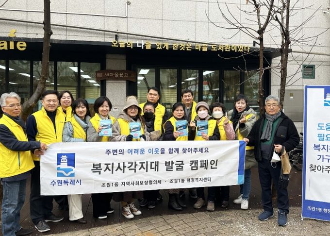 [경남도민뉴스=김미순 기자] 수원시 장안구 조원1동은 지난 14일, 지역사회보장협의체와 협력하여 겨울철 복지사각지대 위기가구 발굴 캠페인을 실시했다고 밝혔다.
