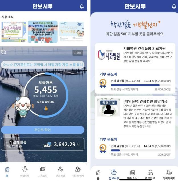 임병택 시흥시장은 “지난해 하반기 첫선을 보인 기부 챌린지에는 약 1만 5천 명의 만보시루 사용자가 참여해 총 6개 기부 기업ㆍ기관으로부터 모두 5,130만 원의 기부금이 시흥시1%복지재단 등에 전달됐다”라며 “건강한 시민과 지역사회 모두를 챙길 수 있는 만보시루에 대한 큰 호응에 발맞춰 안정적인 운영을 위해 최선을 다하겠다”라고 밝혔다.
