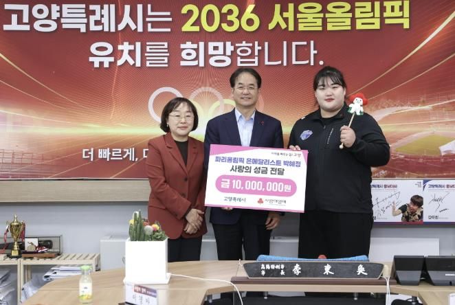 고양특례시는 지난 15일 시청 열린 시장실에서 이동환 고양특례시장, 박혜정 선수, 경기사회복지공동모금회 관계자 등이 참여한 가운데 기부금 전달식을 가졌다고 밝혔다.