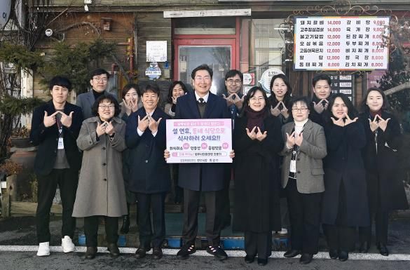 원강수 원주시장을 비롯한 시 공무원들은 설 명절을 앞둔 15일 중앙동 연두순방을 마친 뒤, 관내 골목식당에서 점심식사를 하며 골목상권 살리기에 앞장섰다.