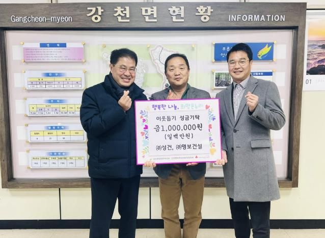㈜명보건설 안영모 대표와 ㈜성건 김성현 대표는 “작은 금액이지만 어려운 이웃들에게 조금이나마 힘이 되길 바라고, 지역과 함께 성장하는 기업이 되도록 나눔활동을 꾸준히 실천하겠다.”고 말했다.