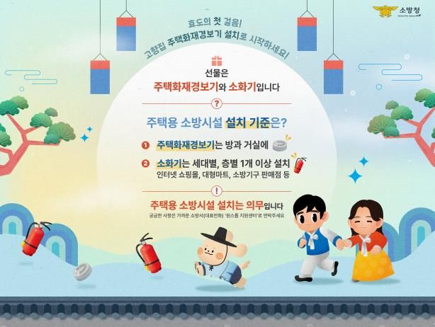 장임수 예방안전과장은 “주택용 소방시설 설치는 선택이 아닌 필수”라며 이번 명절에는 화재 초기에 큰 도움을 주는 주택용 소방시설을 선물해 내 가족의 생명과 재산을 지키길 바란다”고 전했다.