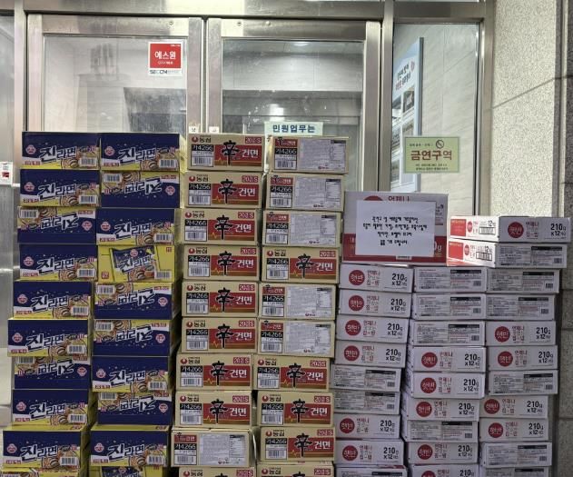[경남도민뉴스=김미순 기자] 지난 15일 이른 새벽, 세류2동 행정복지센터 문 앞에 익명의 독지가가 두고 간 라면 40개 상자와 즉석밥 30개 상자가 발견됐다.