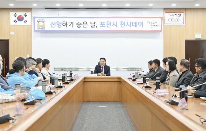 [경남도민뉴스=김미순 기자] 포천시는 지난 15일 시정회의실에서 ‘선행하기 좋은 날, 포천시 천사데이’ 이웃돕기 기탁식을 개최했다.