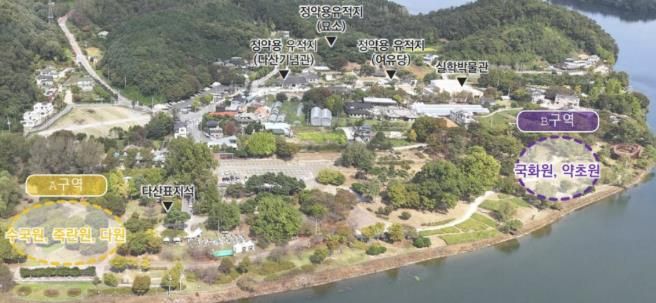 시는 '제황산유인첩', '다산화사', '죽란화목기' 등 정약용의 저서 등을 참고해 △수국원 △죽란원 △다원 △국화원 △약초원 등 다섯 가지 테마로 정원을 조성할 계획이다.
