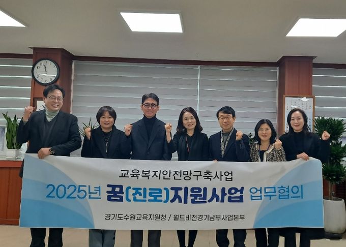 [경남도민뉴스=김미순 기자] 경기도수원교육지원청에서는 교육복지안전망구축의 일환으로 취약계층 학생들의 지원영역 확대를 위해 월드비전 경기남부사업본부(본부장 최성호)와 꿈(진로)지원사업 설명 및 협의회를 진행했다고 밝혔다.
