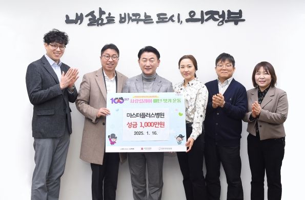 김동근 시장은 “매년 따뜻한 마음으로 100일간 사랑릴레이에 참여해 주시는 마스터플러스병원에 감사하다”며 “전달해 주신 성금을 어려운 이웃들을 위해 의미있게 사용하겠다”고 말했다.