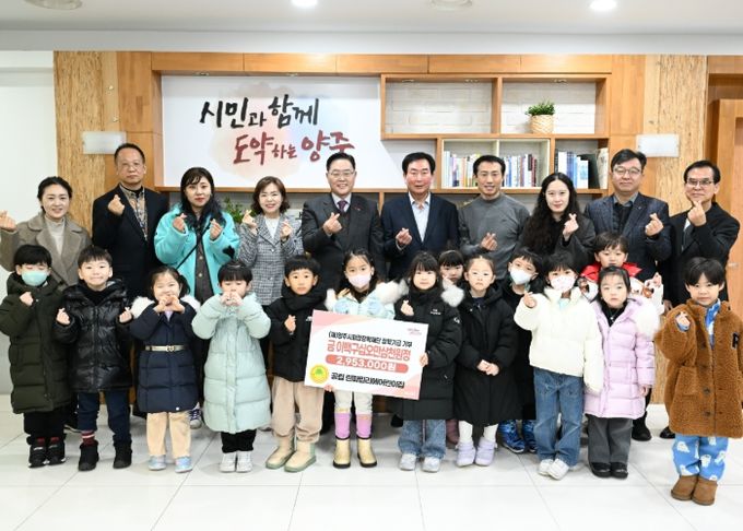 이날 기탁식에는 강수현 양주시장, 이진규 이사장, 박옥연 원장과 원아 및 학부모 대표 등 26명이 참석했다.