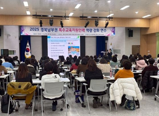 [경남도민뉴스=최민숙 기자] 경산교육지원청 특수교육지원센터는 1월 16일 학생교육지원관 2강당에서 경북 남부권(경산, 영천, 청도, 경주) 유, 초, 중, 고, 특수학교 특수교육실무사 및 사회복무요원 120여명을 대상으로 역량 강화 연수를 실시했다.
