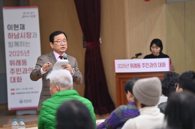 [경남도민뉴스=김미순 기자] 이현재 하남시장은 16일 위례동 주민과의 대화에서 “하남시는 재정사업으로 전환된 위례신사선의 하남 연장을 목표로 송파와 연대해서 이를 공동의 이슈로 만들기 위해 노력해가고 있다”며 “우리 주민들께서도 많은 관심과 힘을 보태주시길 부탁드린다”고 밝혔다.