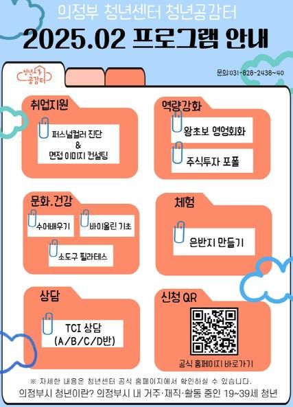 [경남도민뉴스=김미순 기자] 의정부시는 청년센터 청년공감터의 2025년 2월 프로그램 참여자를 1월 20일부터 모집한다.