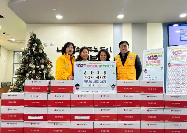 [경남도민뉴스=김미순 기자] 의정부시 송산3동행정복지센터는 1월 15일 송산3동 적십자봉사회가 어려운 이웃을 돕기 위해 영양밥 세트 28상자를 기부했다고 밝혔다.