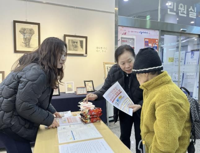 이날 홍보활동은 ‘사랑의 떡국 나눔 행사’참여를 위해 방문한 주민들이 참여할 수 있도록 1층 로비에서 진행됐으며, 관내 위기가구를 발견할 시 손쉽게 제보할 수 있도록 OR코드를 활용한 복지위기 알림앱 가입을 독려하고, 어려운 이웃돕기 및 복지사각지대 발굴을 위한 홍보물을 배부했다.