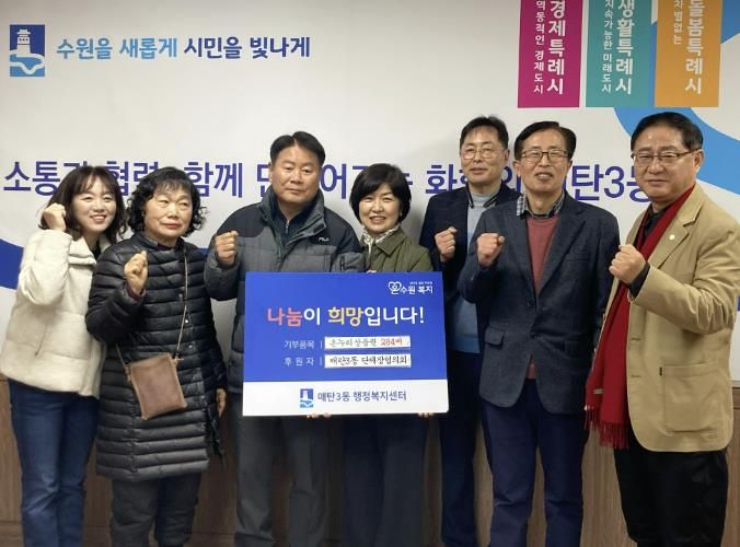 김승미 매탄3동장은 “매년 명절마다 뜻깊은 나눔으로 이웃사랑에 동참해 준 단체장협의회분들 덕분에 새해가 더 따뜻해지고 있다. 깊은 감사를 전한다. 지역 주민들이 어려움을 극복할 수 있게 더 큰 관심을 가지도록 노력하겠다.”라고 말했다.