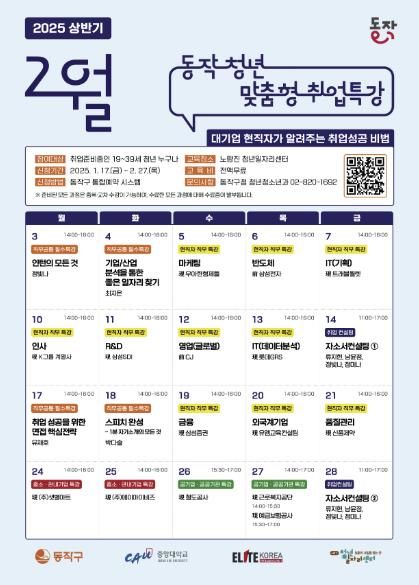 [경남도민뉴스=윤장희 기자] 동작구는 관내 대학생 및 구직 청년의 취업 준비와 진로 개발을 돕고자 내달 3일부터 28일까지 ‘동작 청년 맞춤형 취업특강’을 운영한다고 밝혔다.