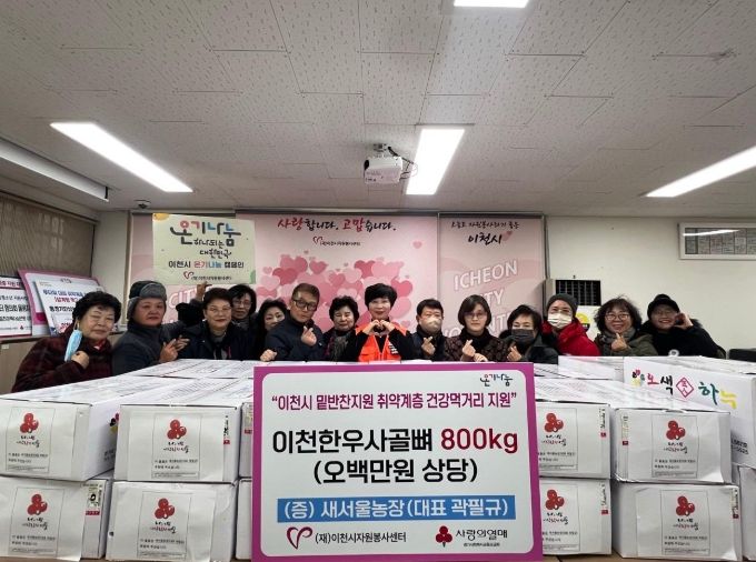 새서울농장은 민족 고유의 설 명절을 맞아 외롭고 어려운 이웃이 건강하고 따뜻한 음식으로 위로받을 수 있도록 이천한우사골 800kg(5백만 원 상당)를 지원했다.
